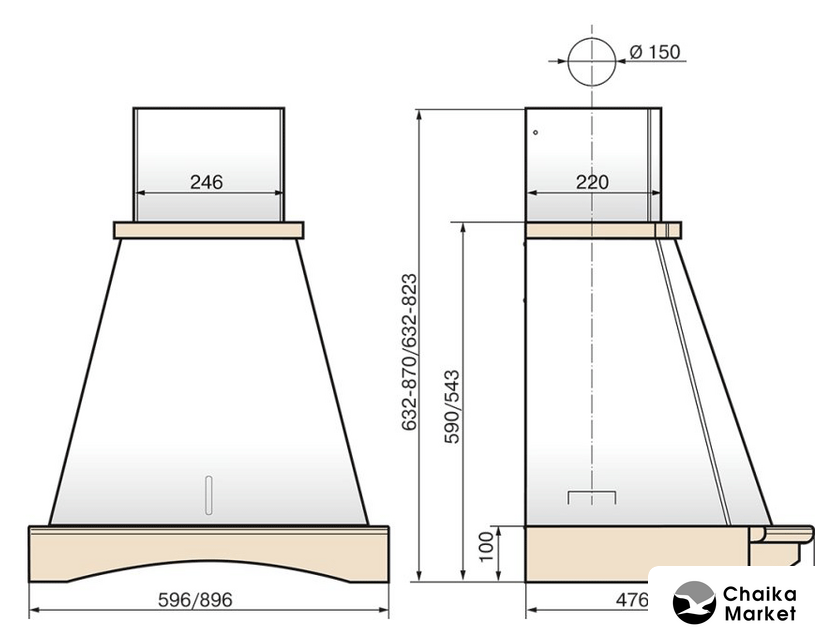 конструкция наклонная, монтаж настенный, ширина 59.6 см, управление сенсорное, производительность мотора 715 м³/ч, цвет белый
