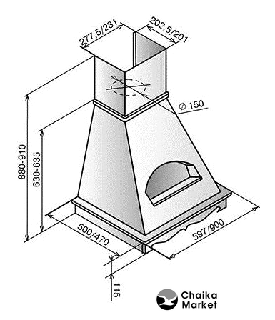 конструкция наклонная, монтаж настенный, ширина 90 см, управление сенсорное, производительность мотора 1050 м³/ч, цвет черный