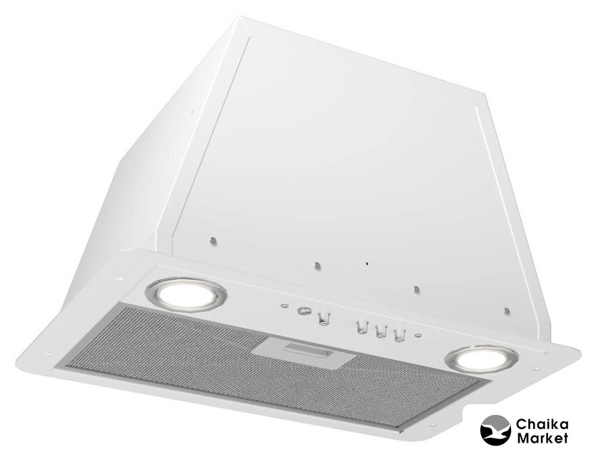 конструкция телескопическая, монтаж для встраивания, ширина 60 см, управление механическое/кнопочное, производительность мотора 650 м³/ч, цвет белый
