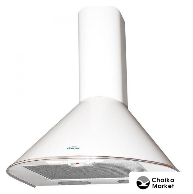 конструкция купольная, монтаж настенный, ширина 49 см, управление механическое/кнопочное, производительность мотора 180 м³/ч, цвет белый