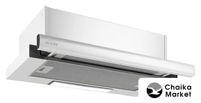 конструкция телескопическая, монтаж для встраивания, управление механическое/кнопочное, производительность мотора 400 м³/ч, ширина 60 см