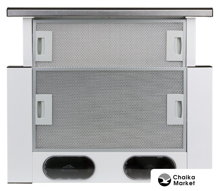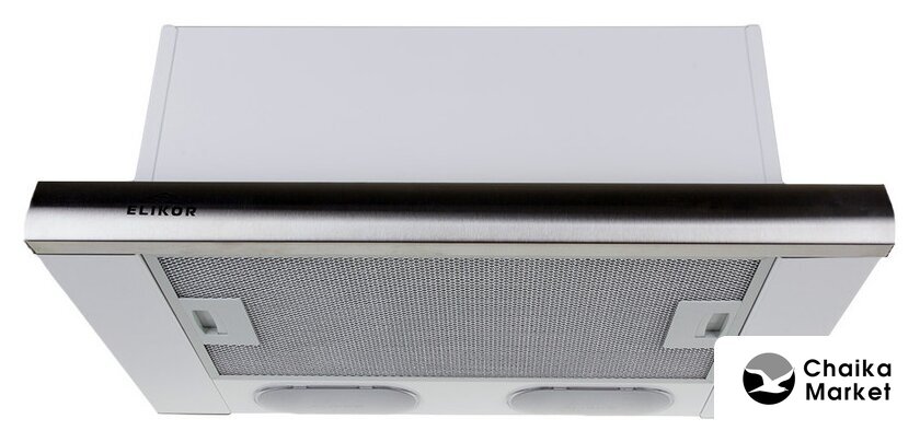 конструкция телескопическая, монтаж для встраивания, управление механическое/кнопочное, производительность мотора 400 м³/ч, ширина 60 см