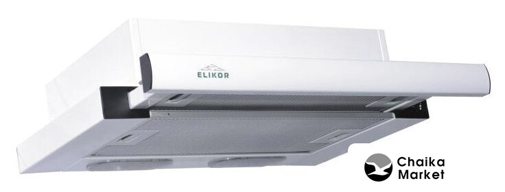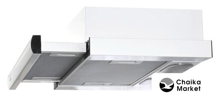 конструкция телескопическая, монтаж для встраивания, управление механическое/кнопочное, производительность мотора 400 м³/ч, ширина 60 см
