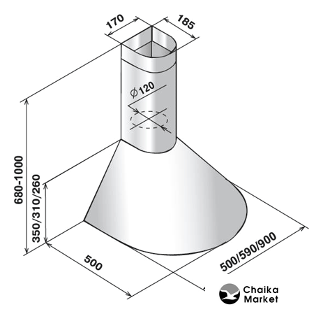 конструкция телескопическая, монтаж для встраивания, ширина 50 см, управление механическое/кнопочное, производительность мотора 850 м³/ч, цвет нержавеющая сталь
