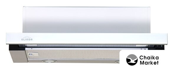 конструкция скрытая, монтаж для встраивания, ширина 52 см, управление механическое/кнопочное, производительность мотора 450 м³/ч, цвет белый