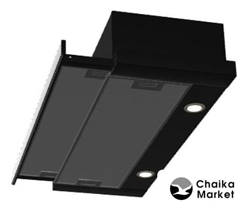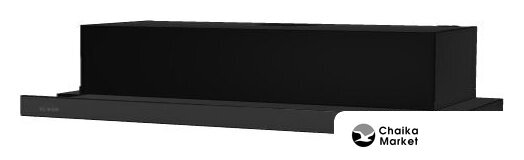 конструкция телескопическая, монтаж для встраивания, ширина 59.5 см, управление механическое/кнопочное, производительность мотора 750 м³/ч, цвет черный