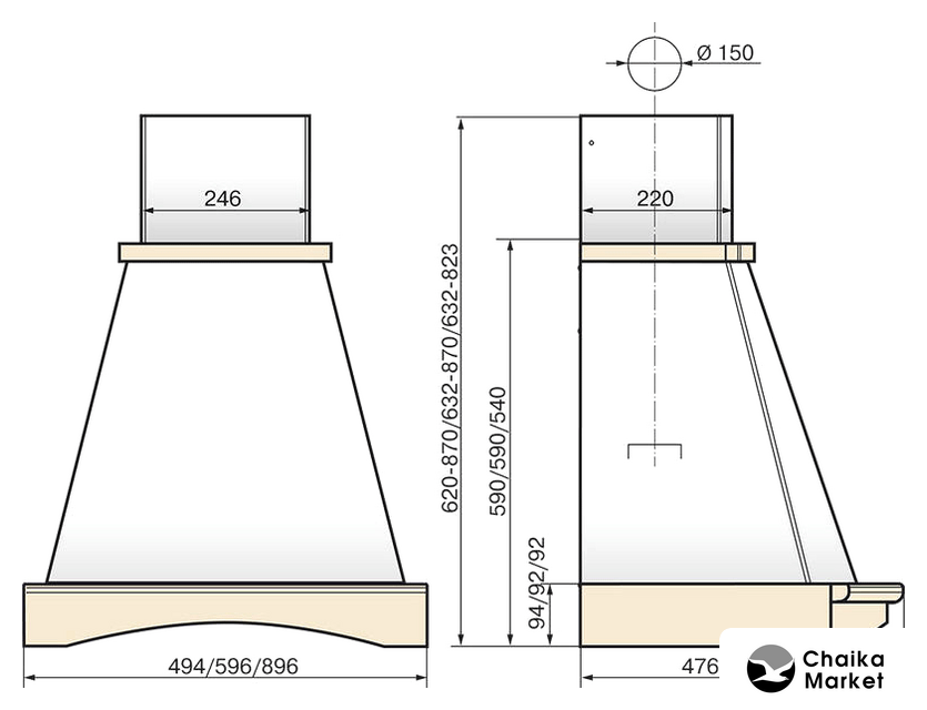 Диаметр воздуховода | 150 мм |
