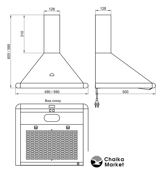 конструкция купольная, монтаж настенный, управление механическое/слайдерное, производительность мотора 430 м³/ч, ширина 50 см