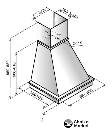 конструкция наклонная, монтаж настенный, ширина 60 см, управление электронное/кнопочное, производительность вытяжки 550 м³/ч, цвет черный