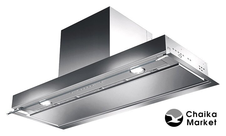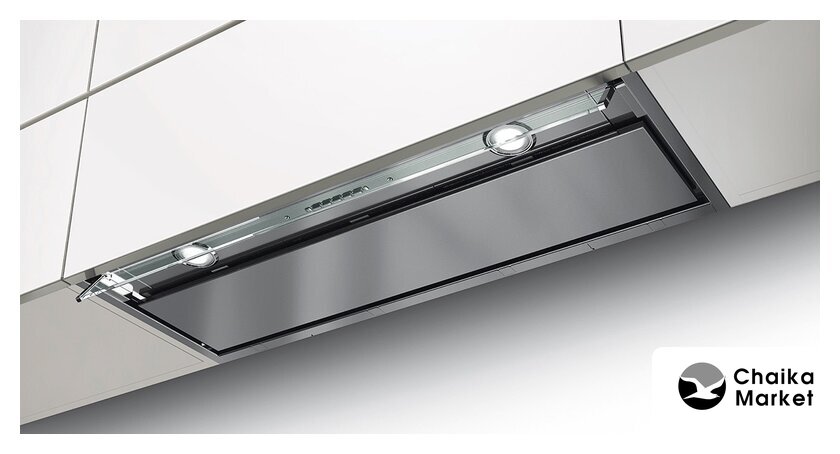 конструкция скрытая, монтаж для встраивания, ширина 89.74 см, управление механическое/кнопочное, производительность вытяжки 603 м³/ч, производительность мотора 1100 м³/ч, цвет нержавеющая сталь