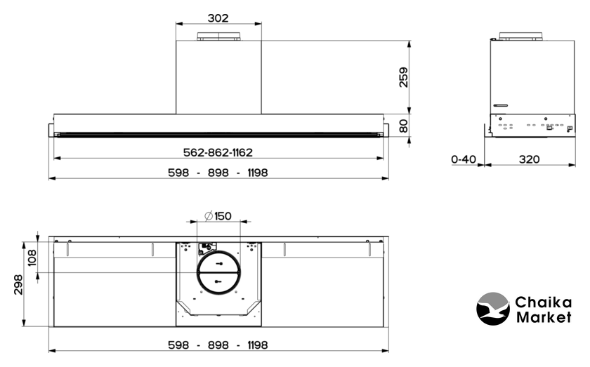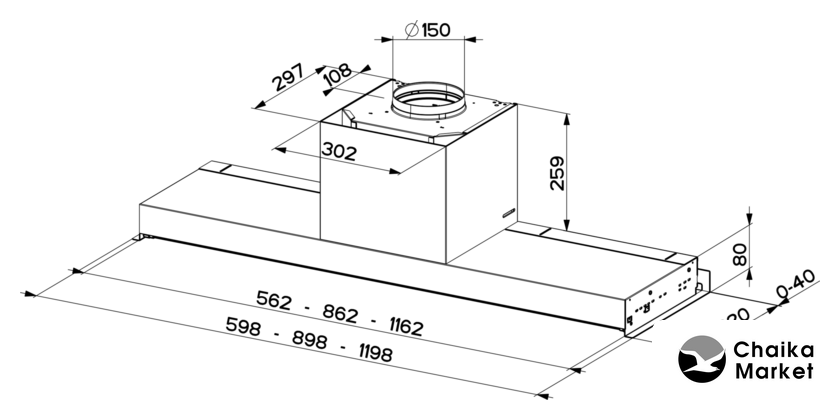 конструкция наклонная, монтаж настенный, управление сенсорное, производительность мотора 1200 м³/ч, ширина 59.8 см