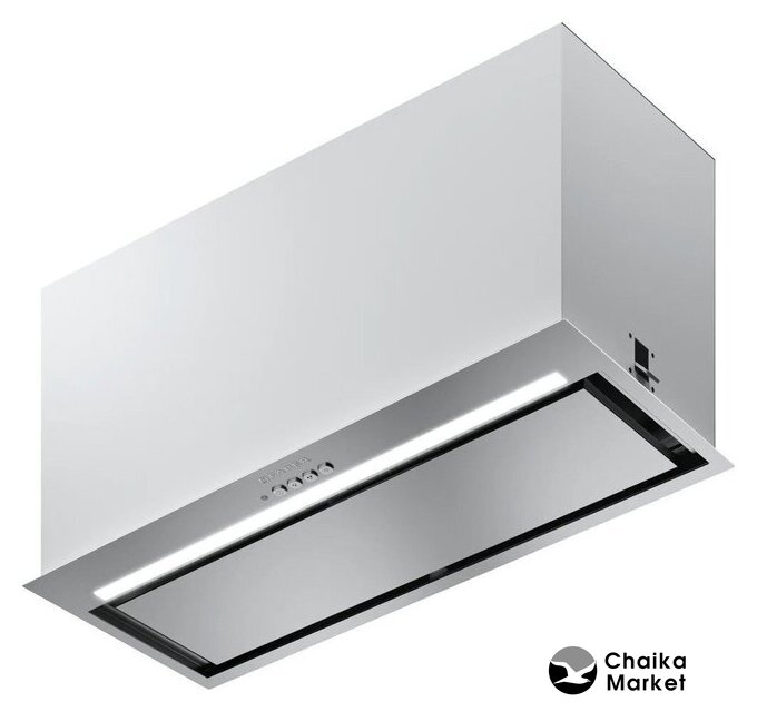 конструкция Т-образная, монтаж настенный, ширина 90 см, управление электронное/кнопочное, производительность вытяжки 451 м³/ч, цвет нержавеющая сталь