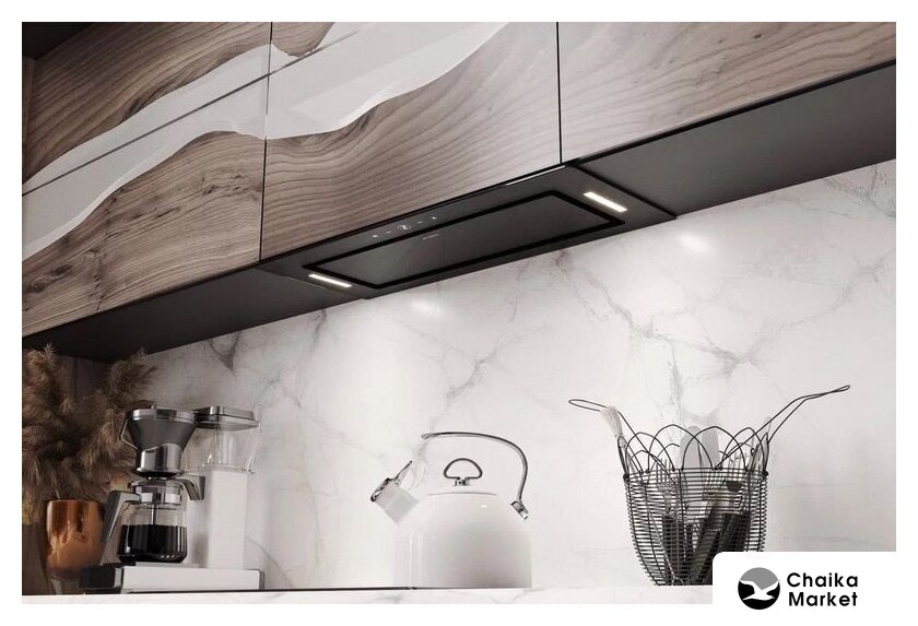 конструкция скрытая, монтаж для встраивания, ширина 59.8 см, управление механическое/кнопочное, производительность мотора 1150 м³/ч, цвет нержавеющая сталь
