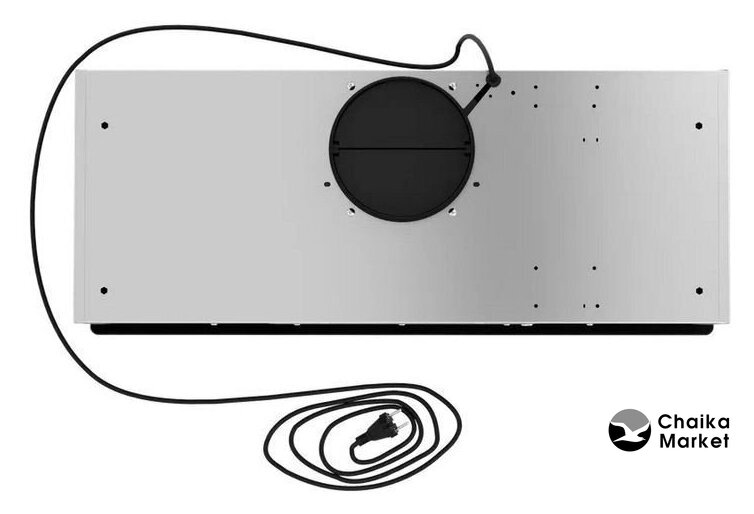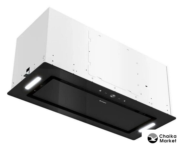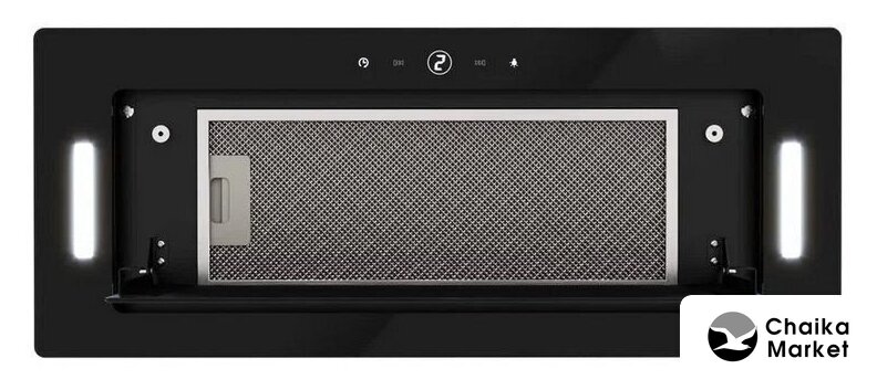 конструкция скрытая, монтаж для встраивания, ширина 59.8 см, управление механическое/поворотный переключатель, производительность мотора 850 м³/ч, цвет черный