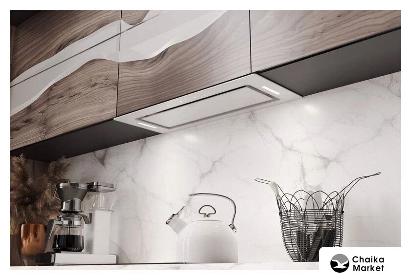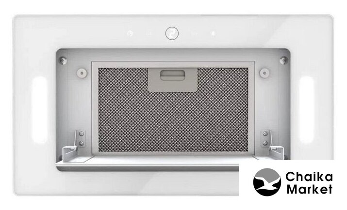 конструкция наклонная, монтаж для встраивания, ширина 59.8 см, управление сенсорное, производительность мотора 1000 м³/ч, цвет белый