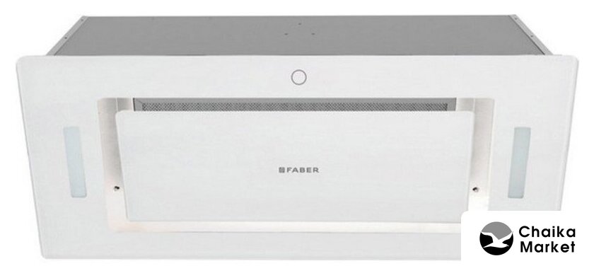 конструкция скрытая, монтаж для встраивания, ширина 59.8 см, управление механическое/кнопочное, производительность мотора 1150 м³/ч, цвет белый