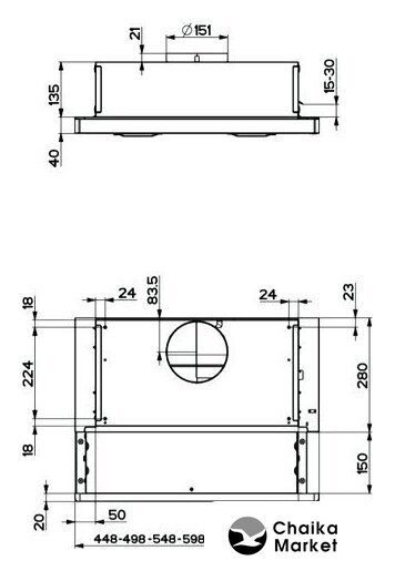 конструкция телескопическая, монтаж для встраивания, ширина 60 см, управление механическое/кнопочное, производительность мотора 400 м³/ч, цвет черный