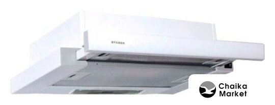 конструкция скрытая, монтаж для встраивания, ширина 50 см, управление механическое/слайдерное, производительность мотора 400 м³/ч, цвет белый