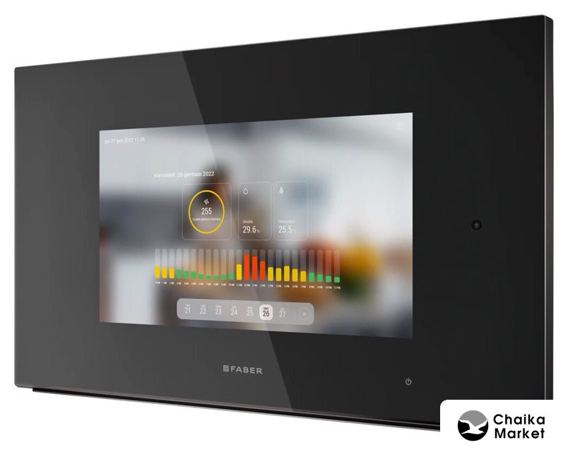 конструкция коробчатая, монтаж островной, ширина 66.8 см, управление электронное, производительность вытяжки 336 м³/ч, производительность мотора 800 м³/ч, цвет серебристый/черный