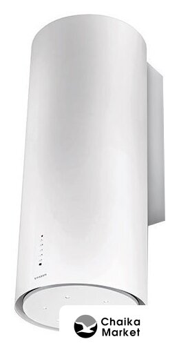 конструкция коробчатая, монтаж островной, ширина 42 см, управление электронное/кнопочное, производительность вытяжки 580 м³/ч, цвет белый