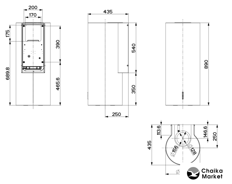 | Минимальная производительность отвода | 290 куб. м/ч |