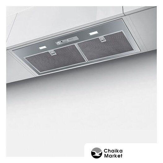 конструкция скрытая, монтаж для встраивания, ширина 73.5 см, управление поворотный переключатель, производительность мотора 850 м³/ч, цвет нержавеющая сталь