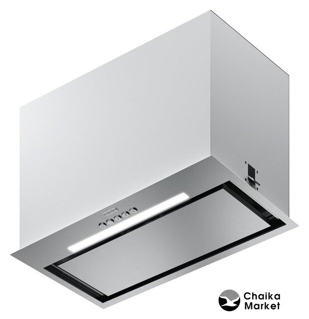конструкция скрытая, монтаж настенный/для встраивания, ширина 54 см, управление электронное/кнопочное, производительность вытяжки 580 м³/ч, цвет нержавеющая сталь/черный