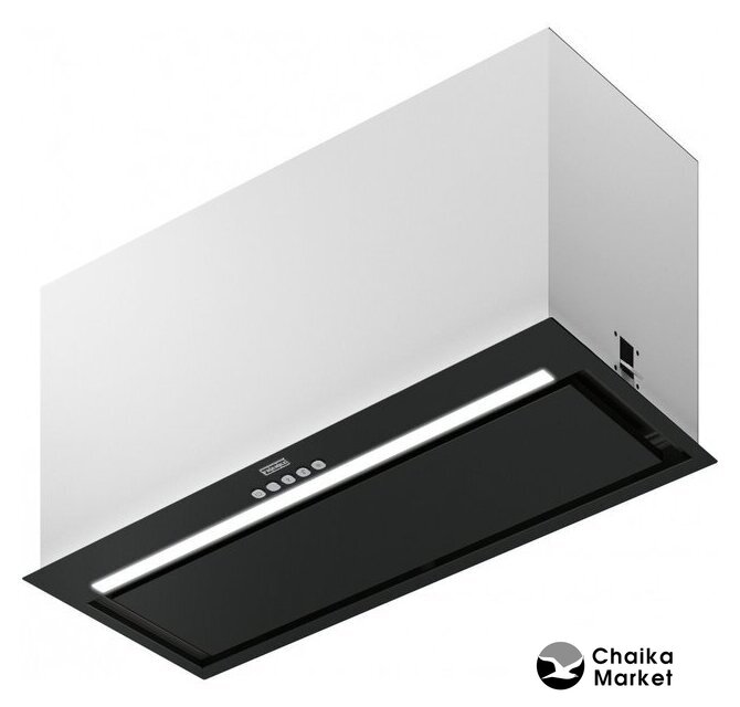 конструкция скрытая, монтаж для встраивания, ширина 53.2 см, управление электронное/кнопочное, производительность вытяжки 591 м³/ч, цвет нержавеющая сталь/черный