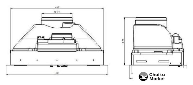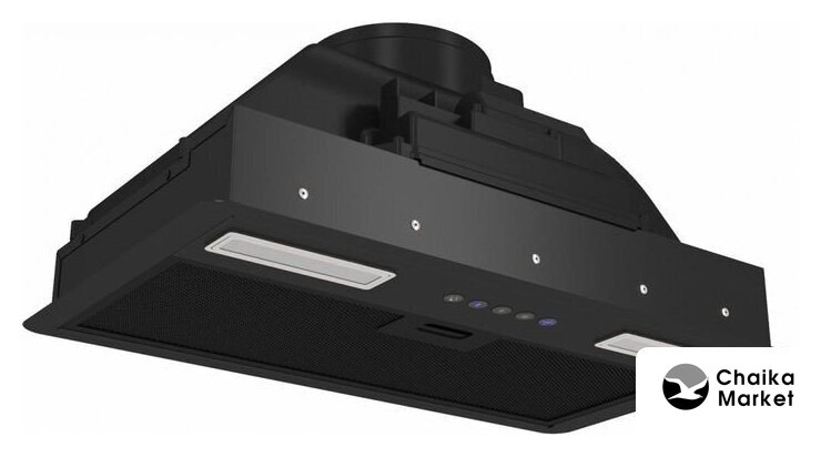 конструкция скрытая, монтаж для встраивания, ширина 49.8 см, управление механическое/кнопочное, производительность мотора 850 м³/ч, цвет черный