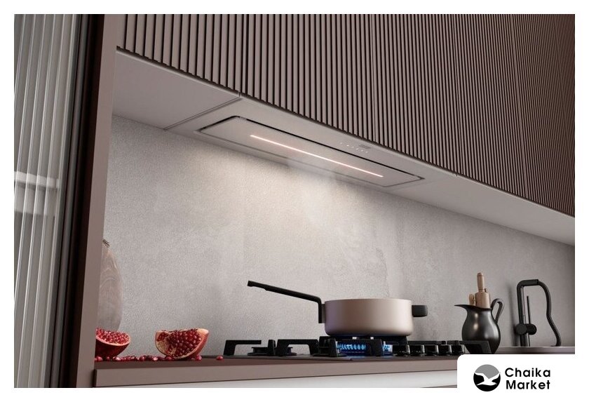 конструкция коробчатая, монтаж островной, ширина 35.15 см, управление электронное/кнопочное, производительность мотора 1050 м³/ч, цвет белый