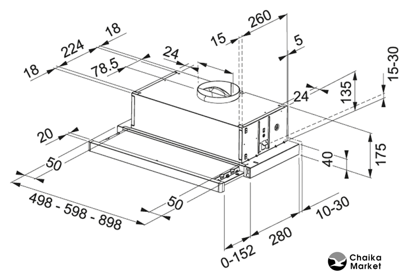 конструкция скрытая, монтаж для встраивания, ширина 59.8 см, управление механическое/кнопочное, производительность мотора 1150 м³/ч, цвет бежевый