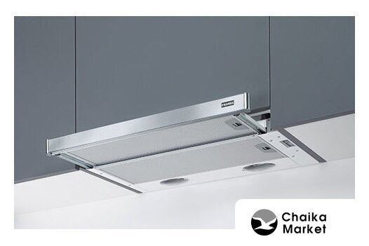 конструкция плоская, монтаж для встраивания, ширина 60 см, управление механическое/слайдерное, производительность мотора 250 м³/ч, цвет белый