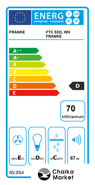 | Годовой расход электроэнергии | 70 кВт·ч/год |