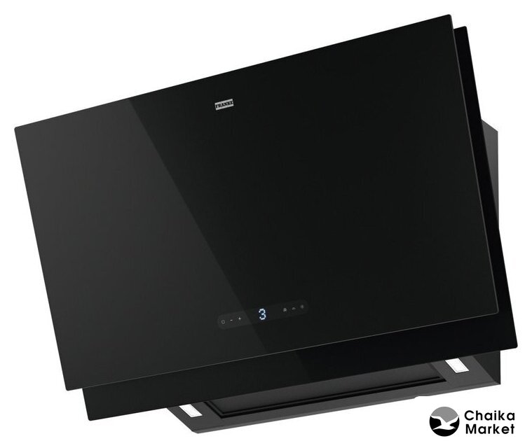 конструкция наклонная, монтаж настенный, ширина 85 см, управление сенсорное/электронное, производительность мотора 1200 м³/ч, цвет черный