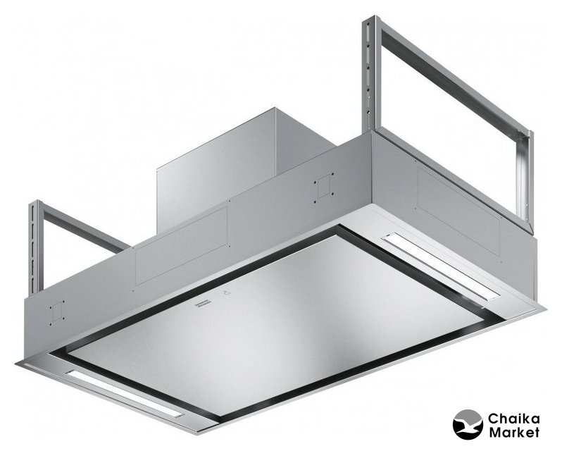 конструкция купольная, монтаж настенный, ширина 85 см, управление сенсорное, производительность мотора 580 м³/ч, цвет серый