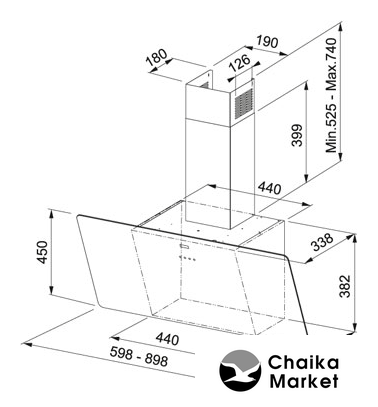 конструкция наклонная, монтаж настенный, ширина 89.8 см, управление сенсорное, производительность вытяжки 560 м³/ч, производительность мотора 900 м³/ч, цвет белый