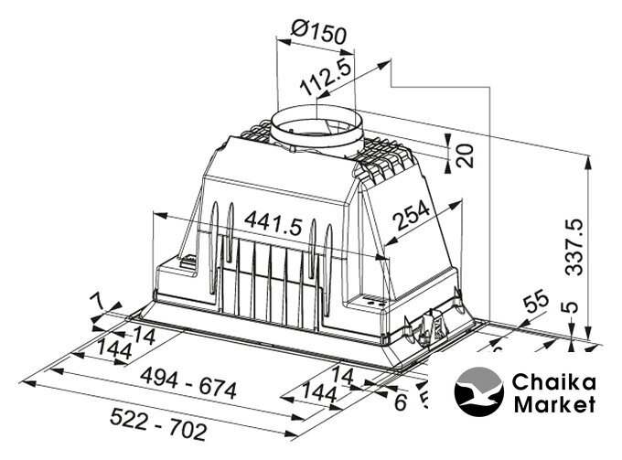 | Диаметр воздуховода | 150 мм |