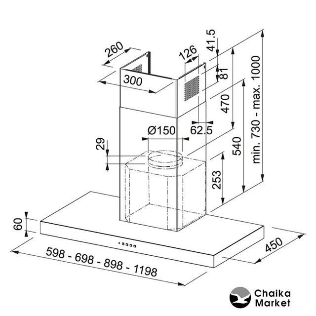 | Диаметр воздуховода | 150 мм |