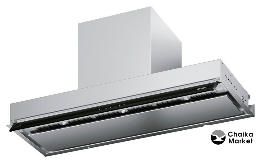 конструкция Т-образная, монтаж настенный, ширина 119.8 см, управление электронное/кнопочное, производительность вытяжки 610 м³/ч, цвет белый