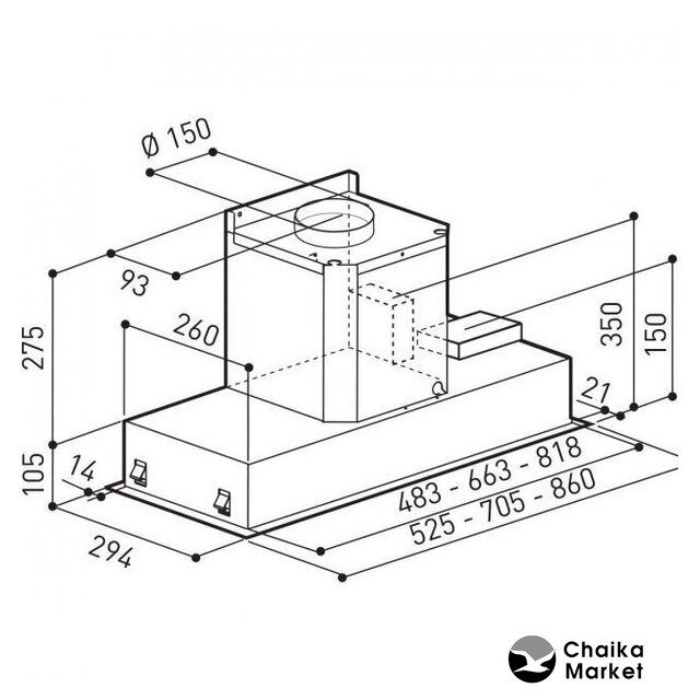 | Диаметр воздуховода | 150 мм |