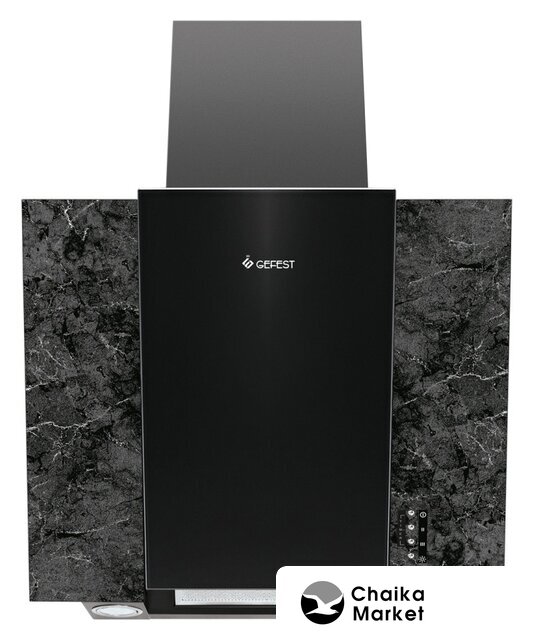 конструкция наклонная, монтаж настенный, ширина 60 см, управление электронное/кнопочное, производительность вытяжки 550 м³/ч, цвет черный