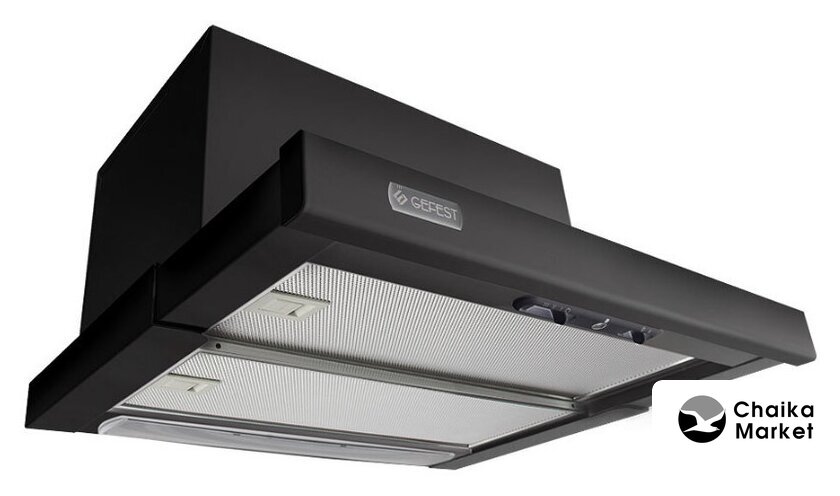 конструкция телескопическая, монтаж для встраивания, ширина 59.7 см, управление механическое/слайдерное, производительность мотора 800 м³/ч, цвет черный