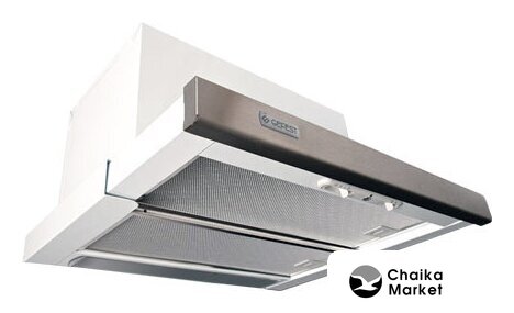 конструкция телескопическая, монтаж для встраивания, ширина 60 см, управление механическое/кнопочное, производительность мотора 350 м³/ч, цвет нержавеющая сталь