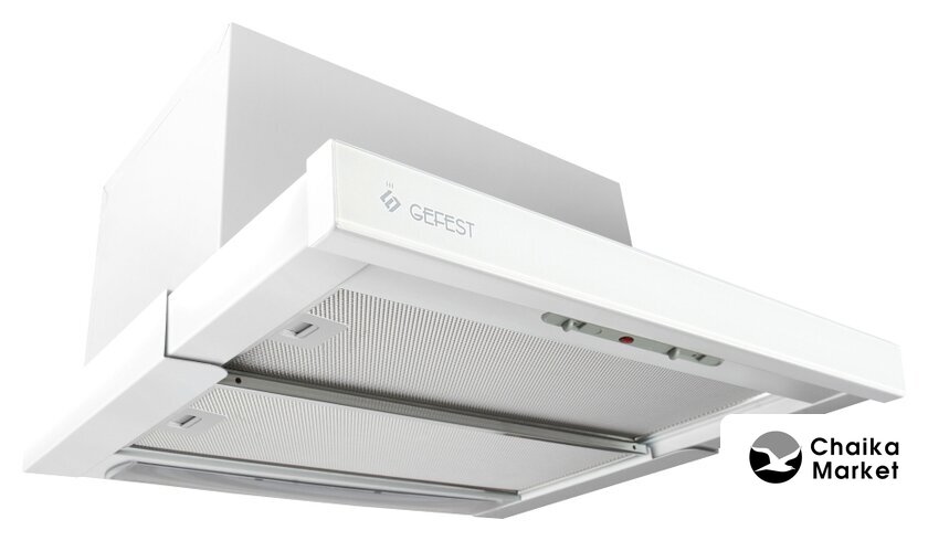 конструкция телескопическая, монтаж для встраивания, ширина 59.7 см, управление механическое/слайдерное, производительность мотора 800 м³/ч, цвет белый