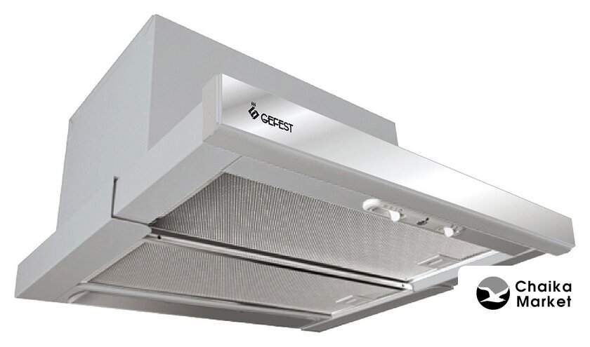 конструкция скрытая, монтаж для встраивания, ширина 59.8 см, управление механическое/кнопочное, производительность мотора 750 м³/ч, цвет белый
