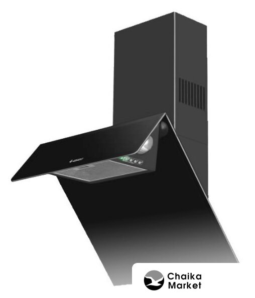 конструкция наклонная, монтаж настенный, ширина 90 см, управление сенсорное, производительность мотора 1050 м³/ч, цвет черный
