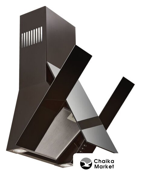 конструкция наклонная, монтаж настенный, ширина 60 см, управление механическое/кнопочное, производительность мотора 850 м³/ч, цвет нержавеющая сталь/черный