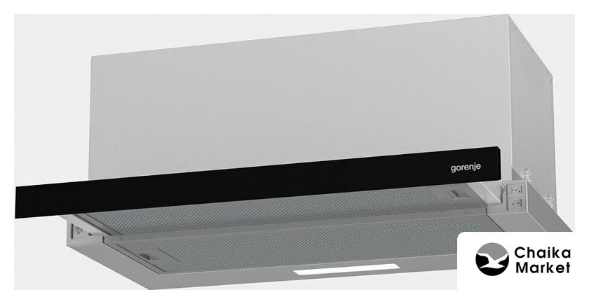 конструкция телескопическая, монтаж для встраивания, управление механическое/кнопочное, производительность мотора 650 м³/ч, ширина 59.8 см