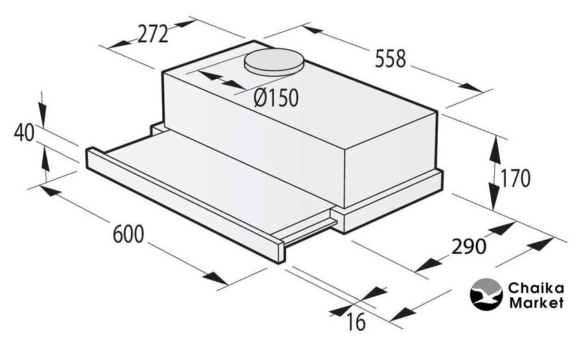 конструкция скрытая, монтаж для встраивания, ширина 59.8 см, управление механическое/кнопочное, производительность мотора 1150 м³/ч, цвет бежевый