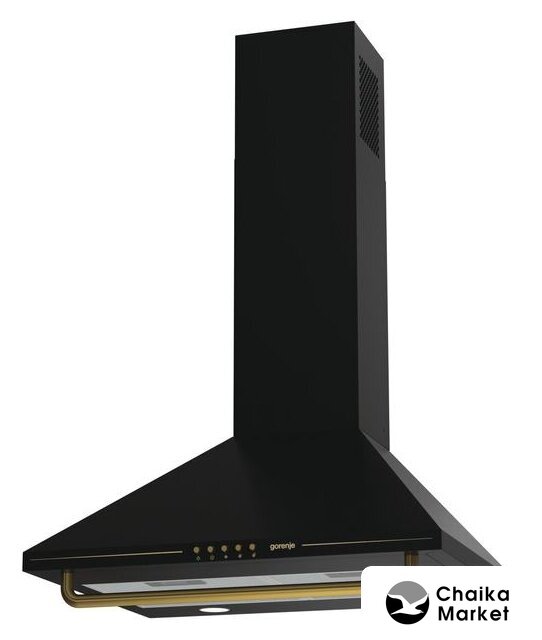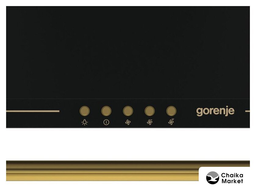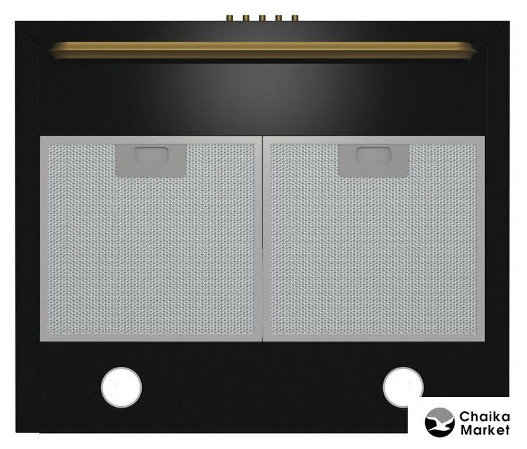 конструкция купольная, монтаж настенный, ширина 89.8 см, управление механическое/кнопочное, производительность мотора 800 м³/ч, цвет золотой/черный